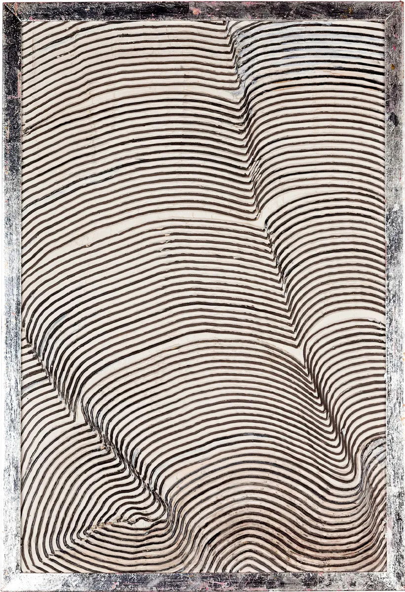 COD: 2066 Dobras do Tempo Técnica mista sobre cartão Material: Tinta Acrilica. Massa acrílica. Medida: 43x63cm
