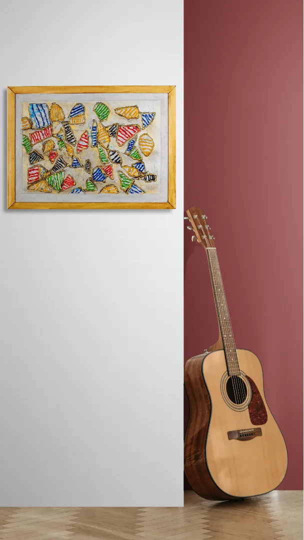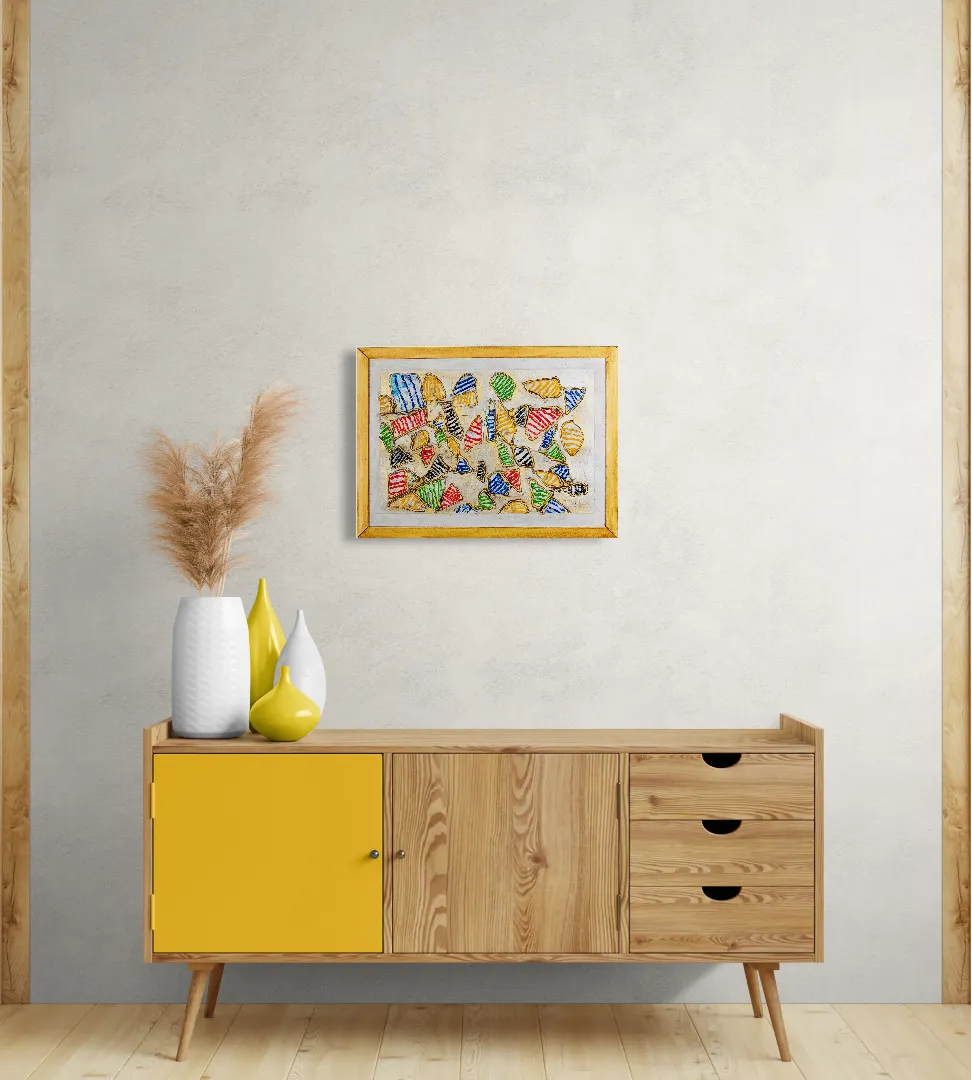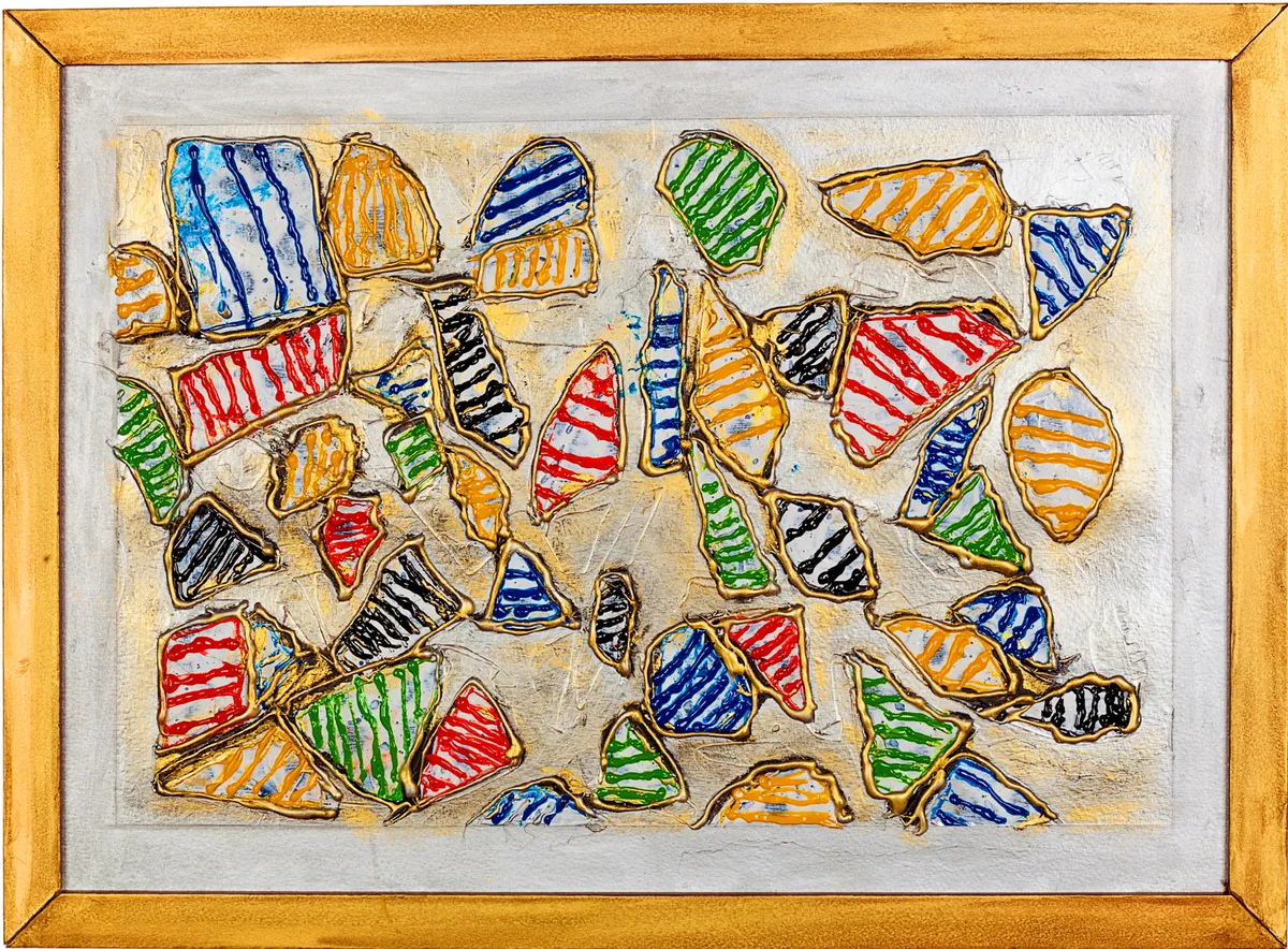 COD: 2053 Fragmentos Cromaticos Técnica mista sobre cartão Material: Tinta Acrilica. Hot Glue. Medida: 45x33cm