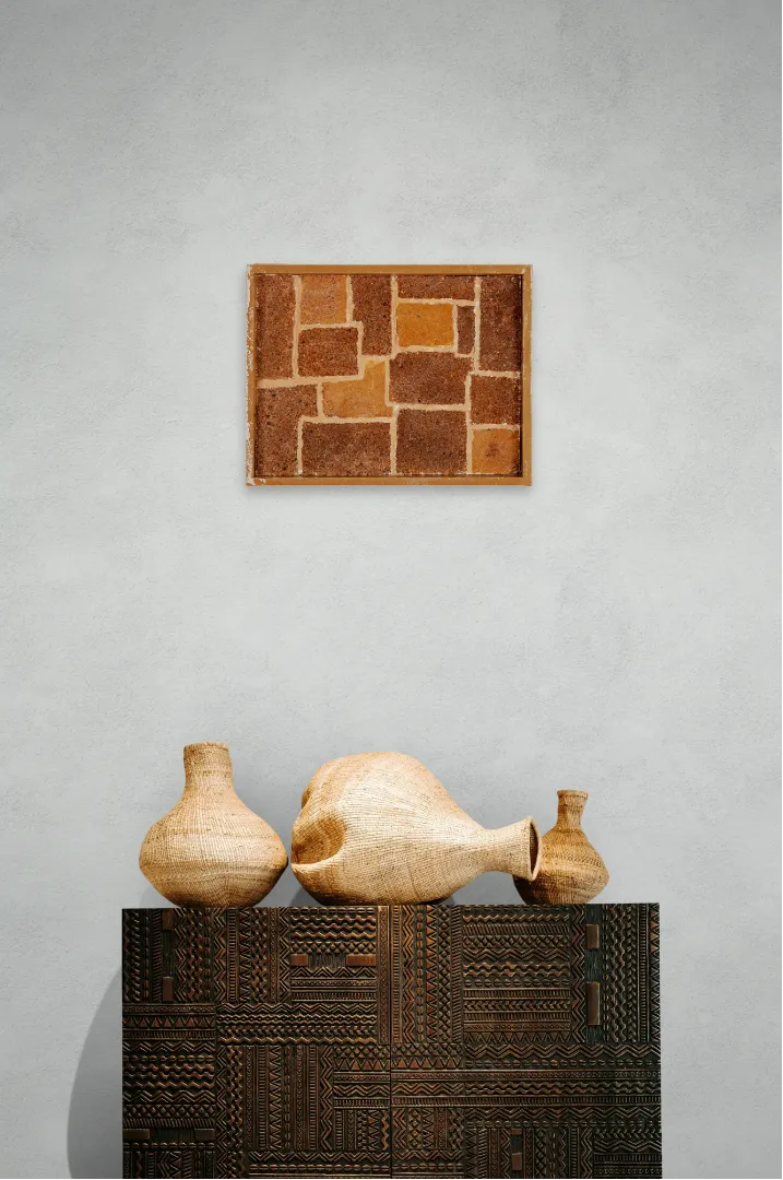 COD: 050 Geometrias Técnica mista sobre tela Material: Terra, pó de mármore, tinta acrilica Medida: 42x33