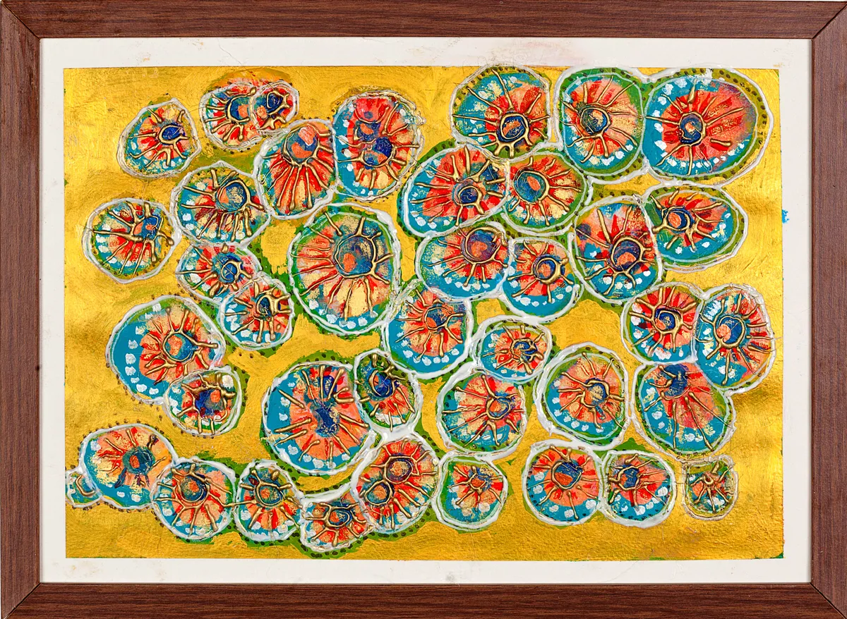 COD: 2003 Mandalas Ancestrais Técnica Mista sobre tela Material: Tinta Acrilica, Massa Acrilica Medida: 42x42cm
